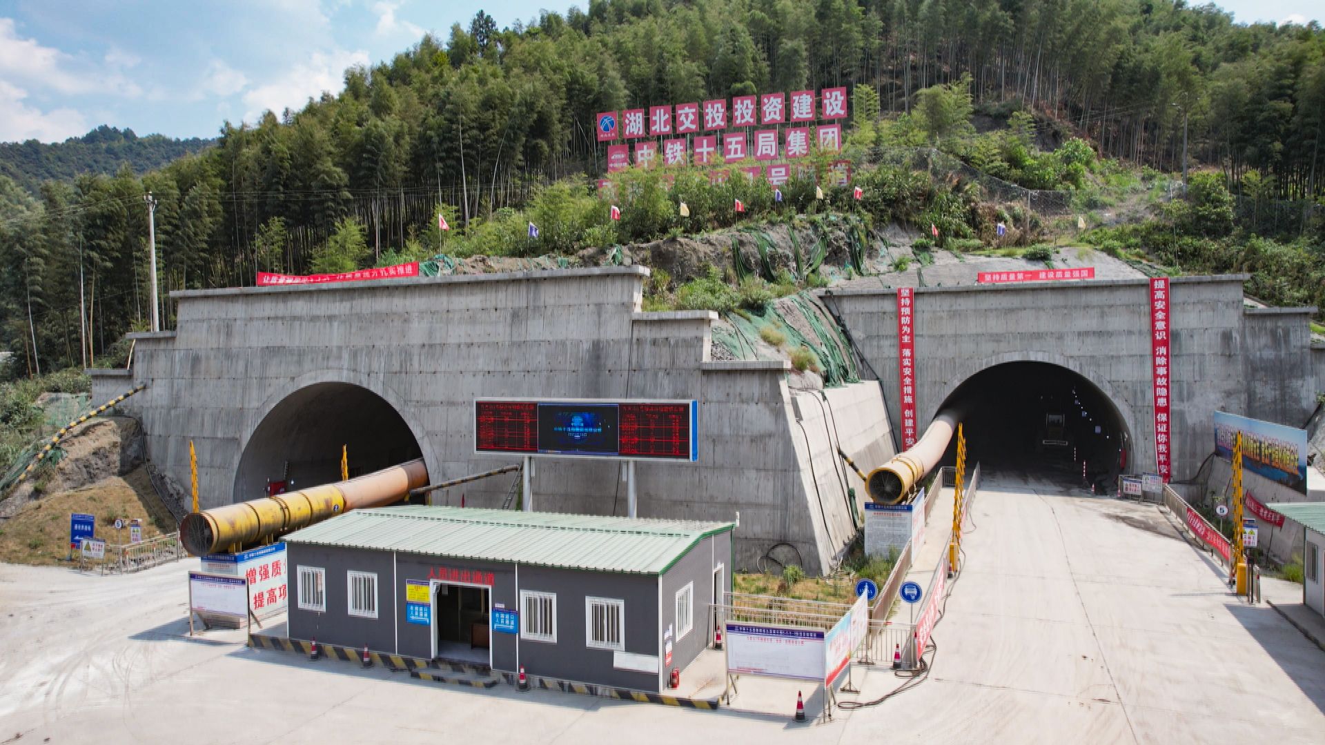 中铁十五局集团咸九高速公路项目部党支部副书记 刘万国:我们施工任务量全长一共是6200多米,我们湖北境内施工是3350米,我们目前是处于进洞阶段,目前单洞掘进已经100多米,我们预计全线贯通,要到2024年国庆节左右。