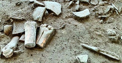 河南偃师二里头遗址首次精细发掘的制骨作坊遗迹 新华社发
