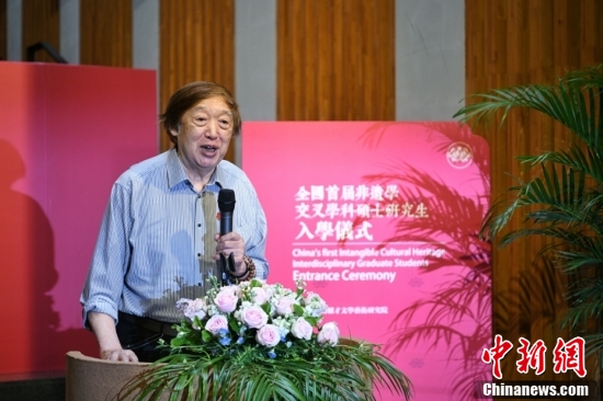 9月27日,中国首届非物质文化遗产学交叉学科硕士研究生入学仪式在天津大学冯骥才文学艺术研究院举行。图为院长冯骥才在新生入学仪式上致辞。