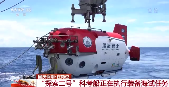 国庆假期,仍有一些人坚守在节日的岗位上。来自中国科学院深海科学与工程所的“探索二号”科考船,此刻就正在某海域执行装备海试任务。