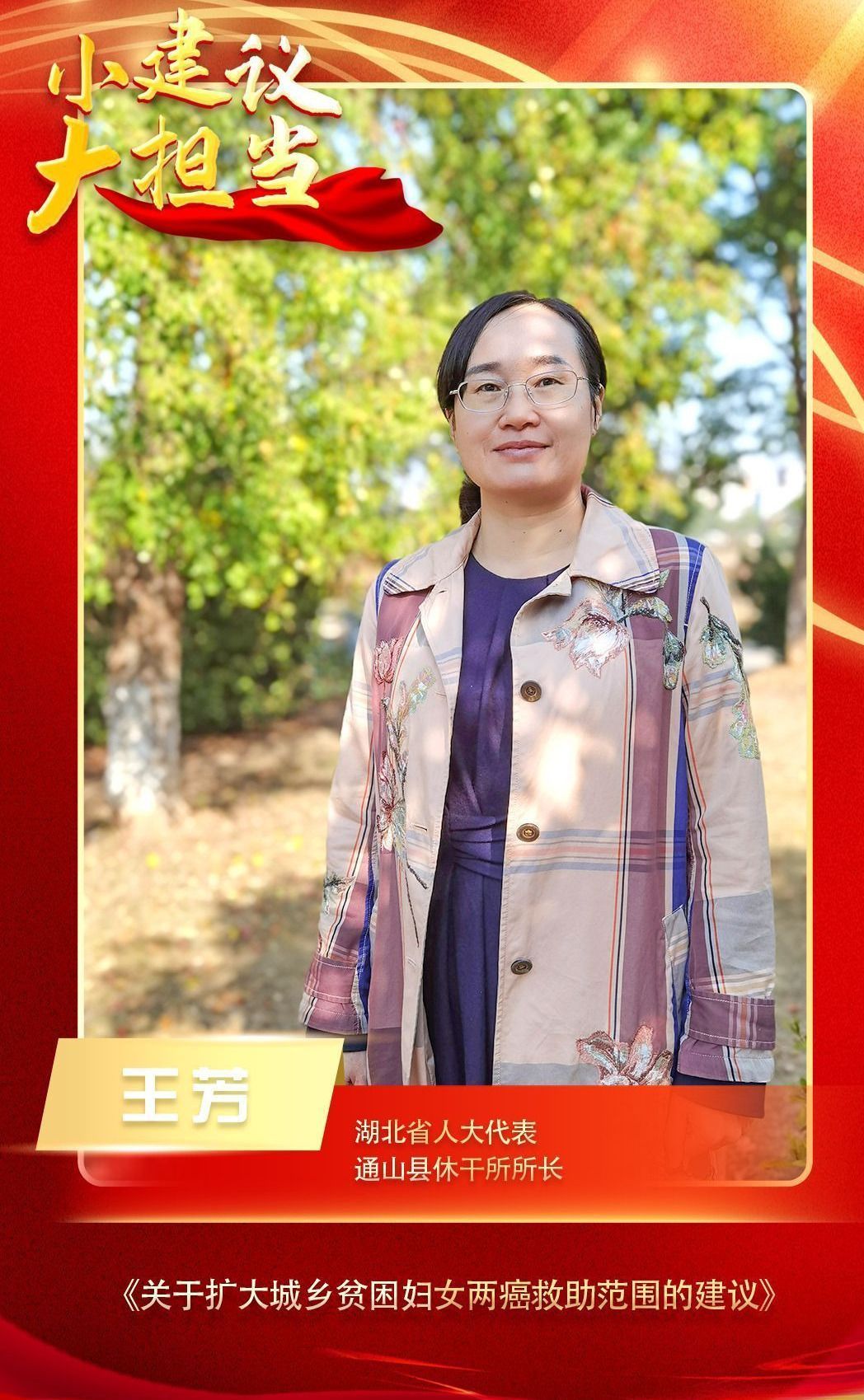 按照现行政策,两癌救助对象是农村建档立卡的贫困户、低保户妇女,而城镇户口的困难女职工,如果患了两癌,同样面临生活困难。去年元月,在湖北省十三届人大五次会议上,王芳等代表提交了建议,希望扩大两癌救助面,对农村和城镇适龄妇女一视同仁,早发现、早诊断、早治疗。7月,王芳就收到了《关于对省人大十三届五次会议第174号建议的答复》,其中提到,力争三年时间实现全省城乡适龄妇女“宫颈癌”免费检查全覆盖。王芳代表的建议,终于变成了一项惠民举措。今年9月,通山县城乡所有适龄妇女都可以参与“两癌”免费筛查及救助。