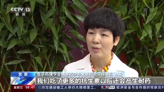 北京药理学会精准药学专业委员会主任委员 林阳:很多患者都是感冒以后吃点感冒清热的药,然后同时也吃抗生素,其实这是不对的,因为一般感冒都是病毒引起来的,抗生素对病毒是没有作用的。我们吃了更多的抗生素以后还会产生耐药,在身体产生耐药以后,当有细菌感染要吃抗菌药的时候反而效果会变差。