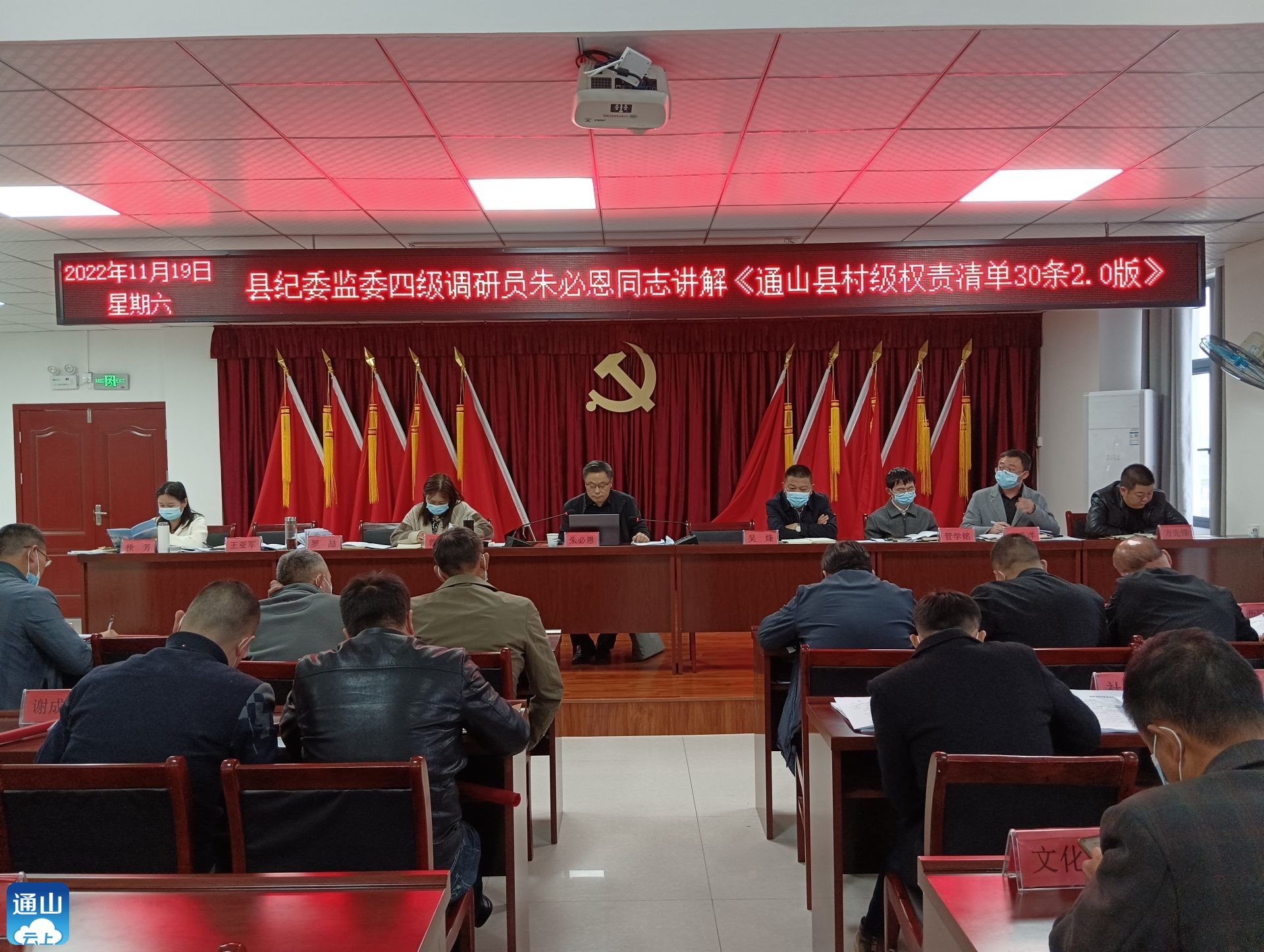 云上通山报道:(通讯员 熊炜)11月19日,县纪委四级调研员朱必恩来到厦铺镇,开展通山县权责清单30条2.0版培训会议。