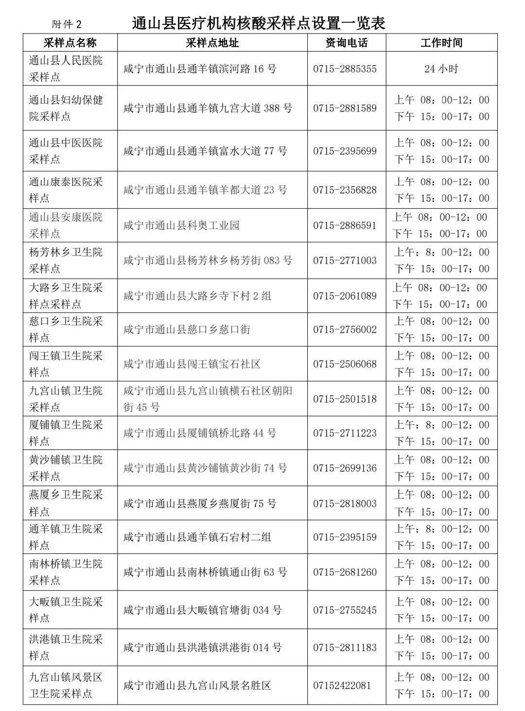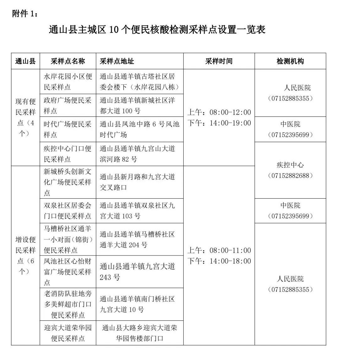 附件:1、通山县主城区10个便民核酸检测采样点设置一览表