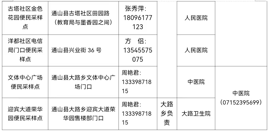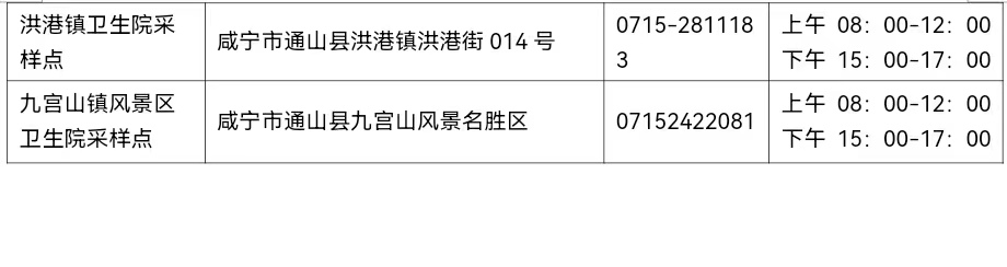 2、通山县医疗机构核酸采样点设置一览表