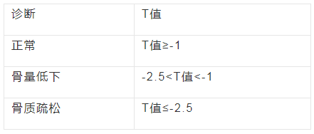 双能X线吸收法(DXA)的测定值是目前全世界公认的诊断骨质疏松症的金标准。临床上推荐的测量部位是腰椎、总髋部和前臂。T值=(测定值-同性别同种族正常成人骨峰值)/正常成人骨密度标准差。