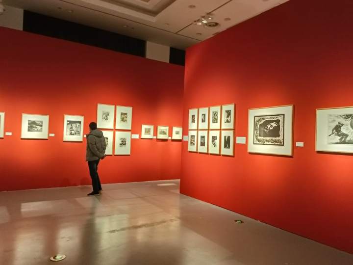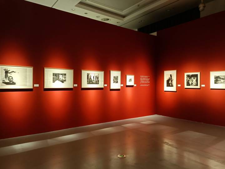 在《释迦说法图》的四周,展示着“两张两赵”四位版画艺术家的46件经典之作。