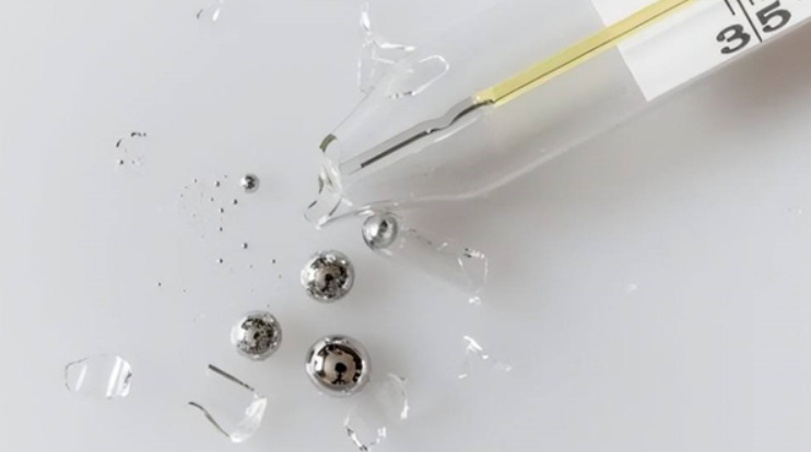 水银是金属汞的俗称,是唯一一种常温下呈液态的金属。体温计破碎后汞掉落在地上会形成许多大小不等的银色小球,如果不及时收集处理就会很快挥发到空气中变成汞蒸气。汞蒸气有很大的毒性,在短时间里吸入高浓度汞蒸气(大于1.0mg/m³),就会导致急性汞中毒,表现为头晕、头痛、乏力、发热等。