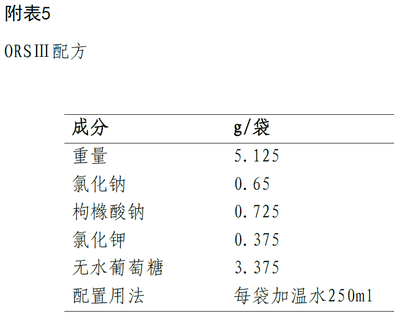对于儿童轻到中度的脱水,口服补液用量(ml)=体重(kg)×(50~75),4小时内分次服完,4小时后再看有没有脱水的情况。除了喝低渗口服补液盐(ORSIII),也可以喝加盐的米汤,每500 ml米汤加细盐1.75 g(大概半个啤酒瓶盖的量)。每次稀便后,还要补充一定量的液体(6个月以下的50 ml,6个月到2岁的100 ml,2到10岁150 ml,10岁以上儿童按需随意饮用),直到腹泻停止。如果症状很轻微,也不是上面提到的高危人群,也可以喝其他好喝的液体(比如运动饮料、咸汤等)来补充水分、电解质和碳水化合物(补充碳水可以提供葡萄糖-钠共转运)。但注意,碳酸饮料几乎不含钠和钾;果汁(比如苹果汁)里的钾和碳水太高,而钠不够;太甜的饮料还会导致渗透性腹泻,都不能喝多了。另外,鸡汤里的钠含量太高,也不建议选择。