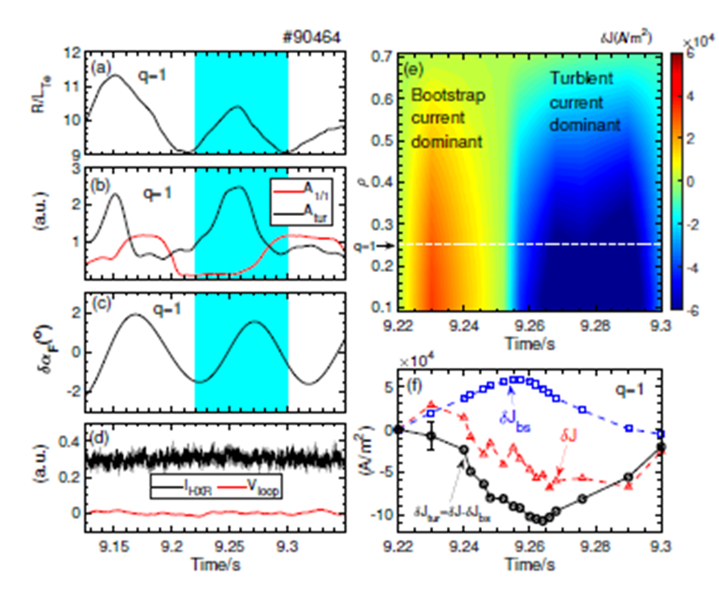 湍流驱动的电流与自举电流动力学特征。