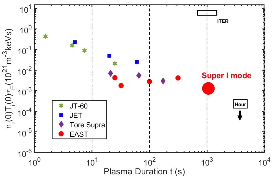 据了解,实现高性能等离子体稳态运行是未来核聚变堆必须解决的关键科学问题,先进运行模式是当前磁约束核聚变研究的热点之一。EAST团队在托卡马克装置实验研究中发现并证明了一种新的高能量约束模式,这种先进模式大幅度提高了能量约束效率,具有芯部无杂质积累,便于聚变反应生成物排出,维持平稳温度台基等优点,并实现了芯部高约束与边界不稳定性的兼容,保证了长时间尺度上的高性能等离子体运行。
