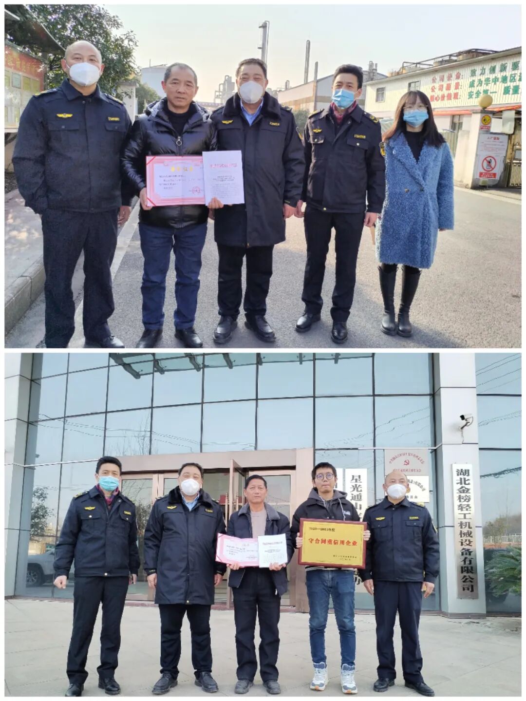 云上通山报道:(特约记者 徐世聪)1月6日下午,通山县市场监管局局长宋骄阳等一行,来到景源生物、星光玉龙机械、国药控股(通山)、宏达路桥公司,为其荣获省级“守合同重信用”企业荣誉颁发证书。
