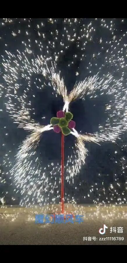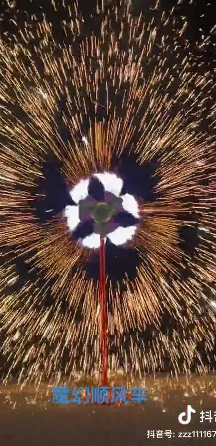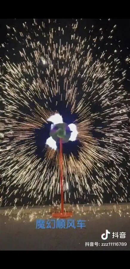 据网友日前发布的视频显示,一名女子点燃竖在地上的小风车形状的烟花,焰火随后便旋转起来,变换出各种颜色和图案,美不胜收。