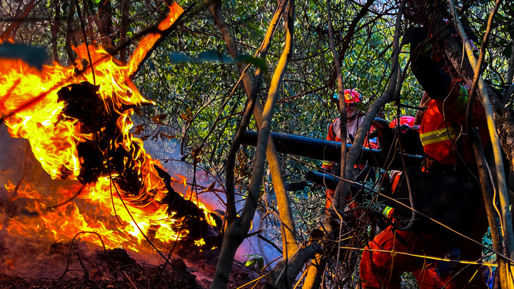 1月30日,消防队员在扑火作业中。新华社发(云南森林消防总队供图)