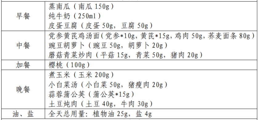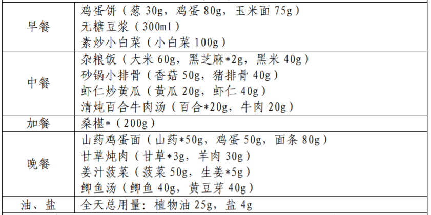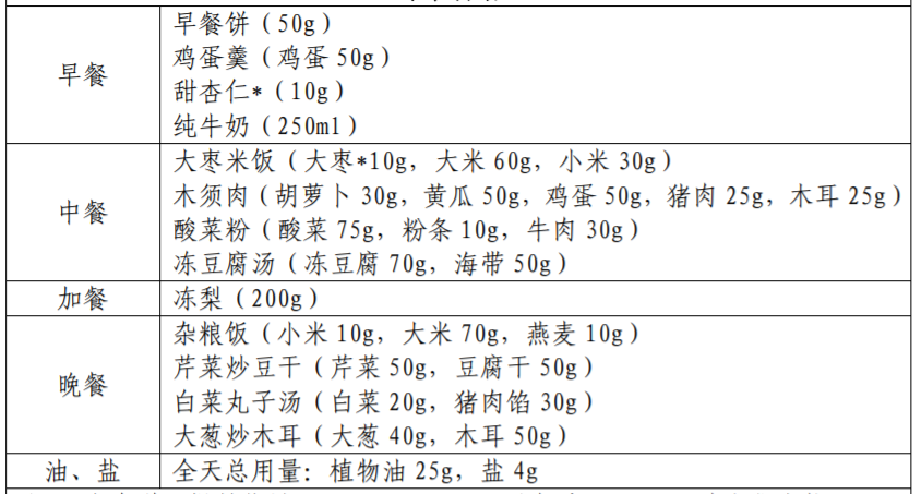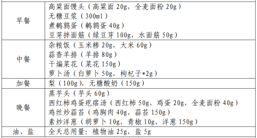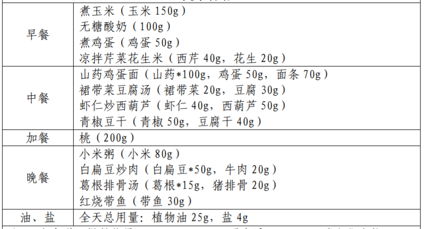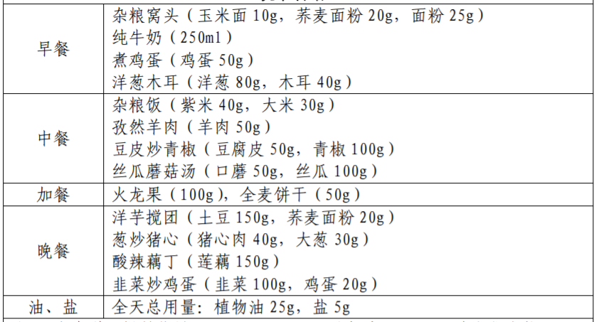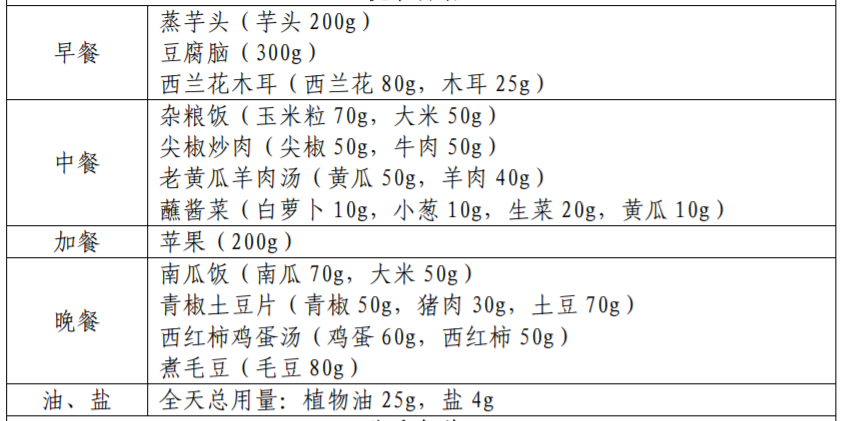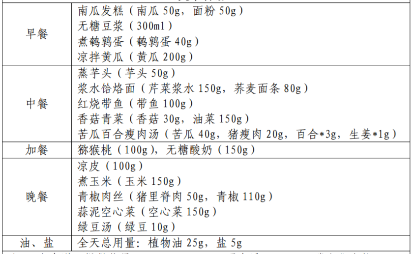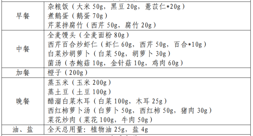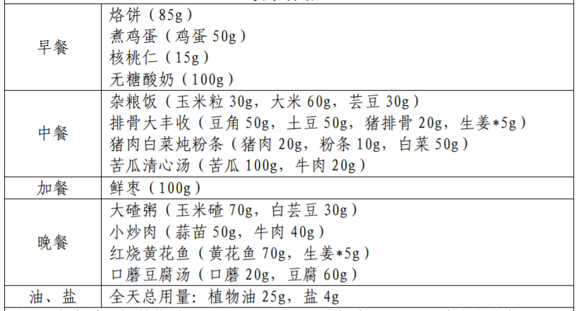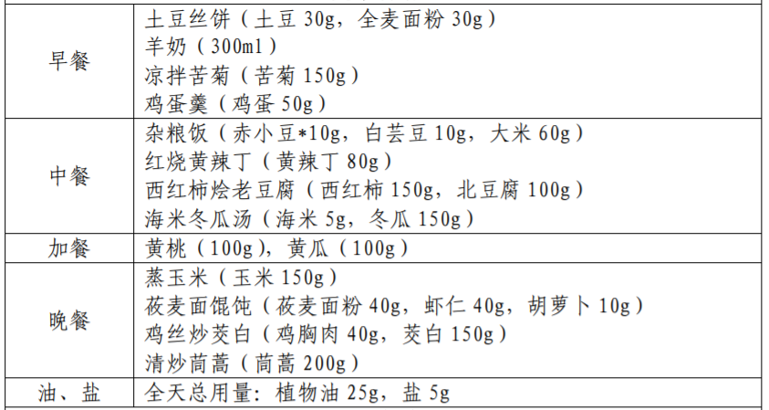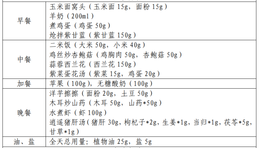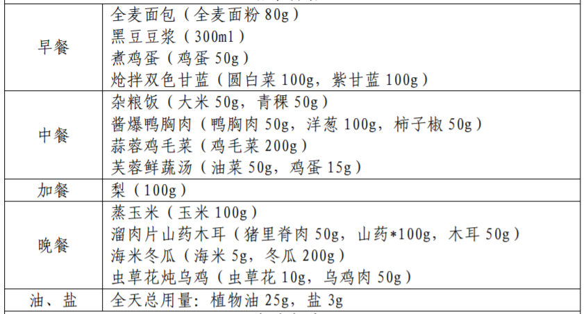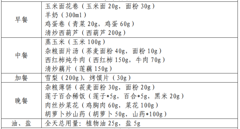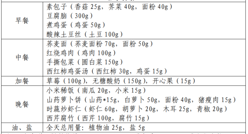 以下图片来源于参考资料,每份食谱每日可提供: