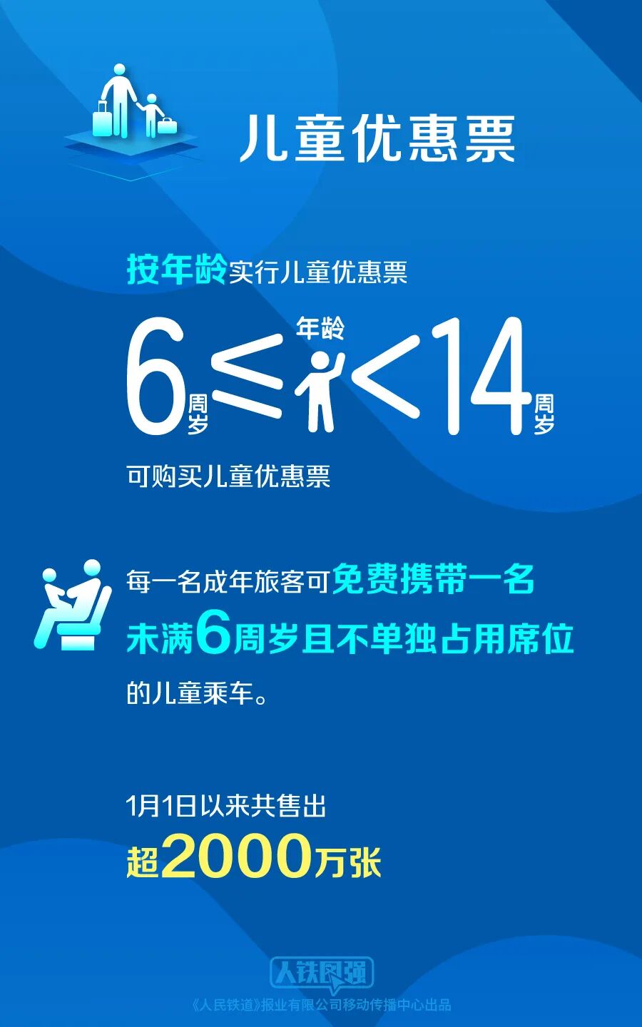 随着1月1日新版《铁路旅客运输规程》正式实施,儿童优惠票和儿童免费乘车以年龄划分优惠标准,儿童旅客实行实名制管理。截至目前,已售出儿童票超过2000万张。新规体现的不仅仅是社会发展,更是铁路部门积极回应民生诉求的务实之举。