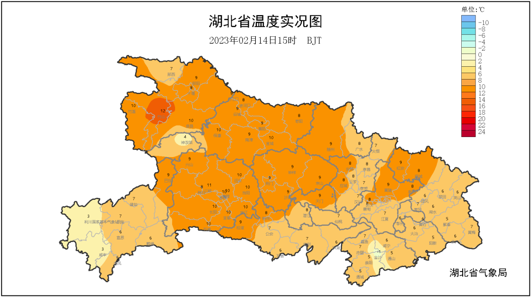 恩施、荆州、仙桃、潜江、咸宁、黄石和黄冈南部等地区,2月以来累计日照时数不足10小时,其中咸宁、通城、崇阳、通山等市县整整13天没有得到一丝阳光的照耀,日照时数为0小时。