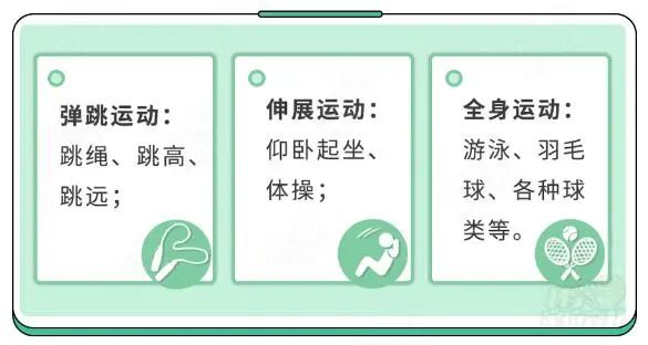 研究表明,经常运动的孩子,比不运动的平均高2-3cm!适当运动,可以刺激生长激素释放。有利于孩子长高的运动有: