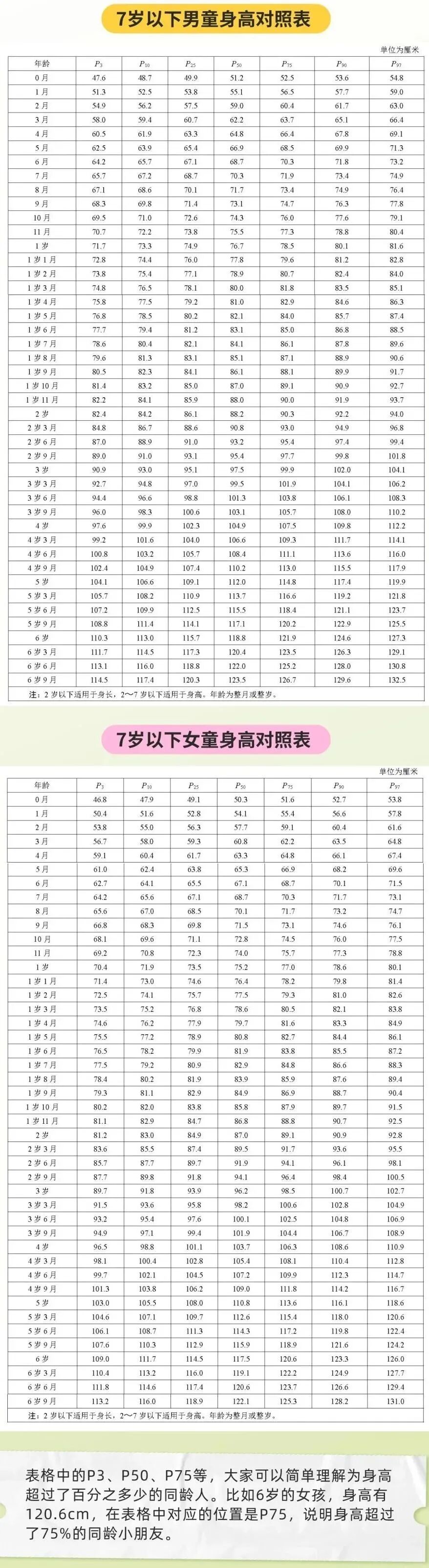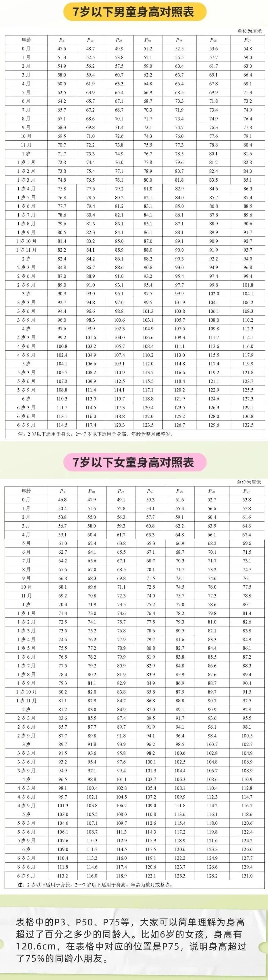 根据新标准提示:孩子的身高百分位数值在P3~P97都属于正常身高。如果孩子的身高在正常范围,家长不必太过焦虑,定期监测即可。