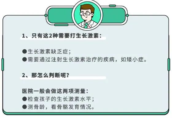 孩子是否需要打生长激素,一定要经过正规医院的检测和专业医生的综合评估,在医生的严格指导下,根据孩子的自身情况及相关检查数据使用,并且要按照医嘱定期随诊,随时反馈孩子的情况。