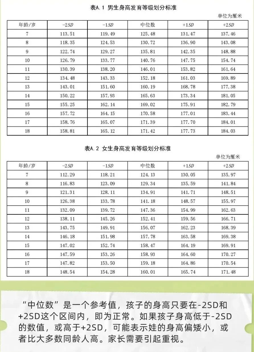 7岁以后的孩子,可以参考2018年国家卫健委发布的《7-18岁儿童青少年身高发育等级评价》的数据。
