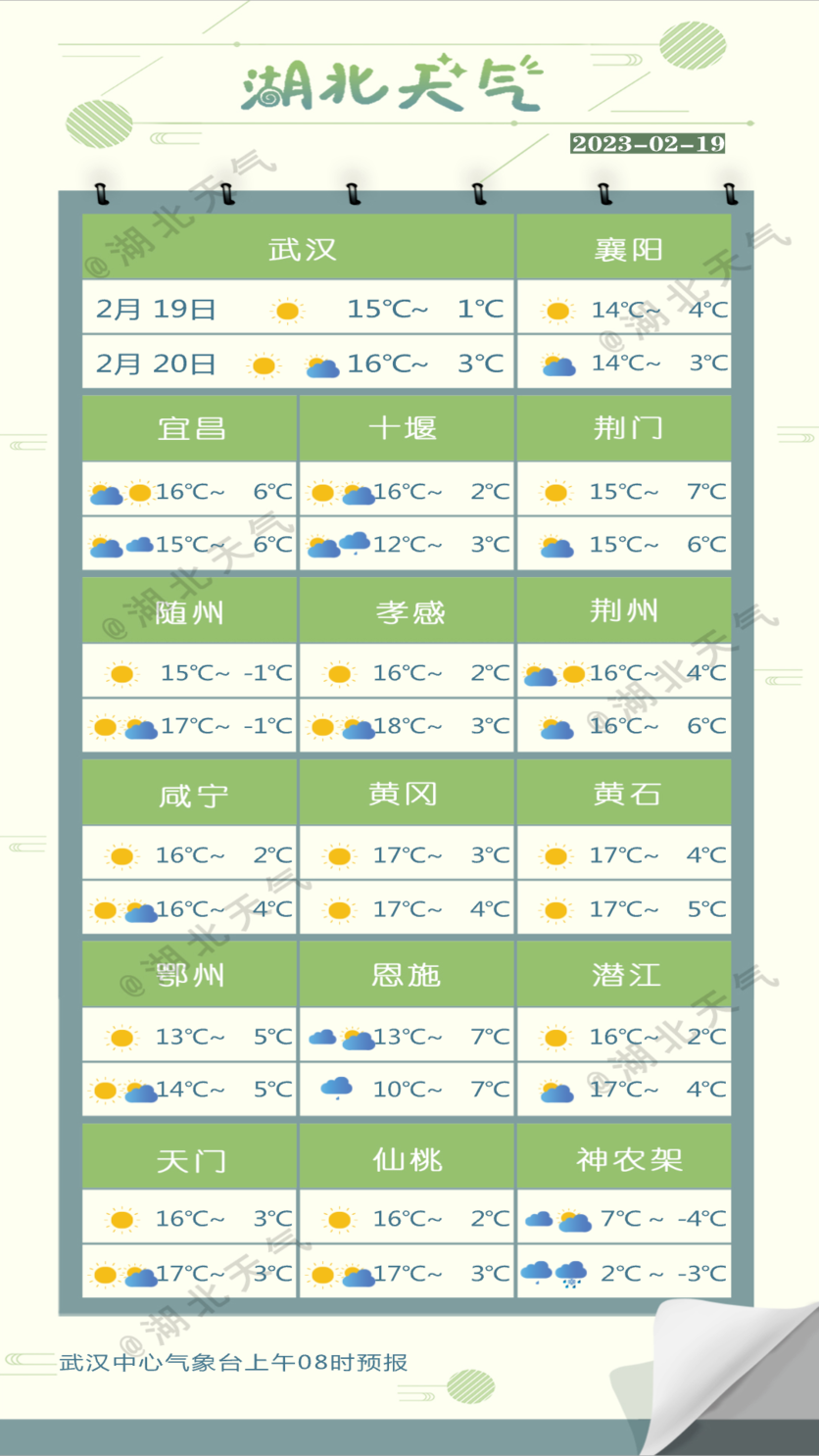 武汉中心气象台2月19日11时预报