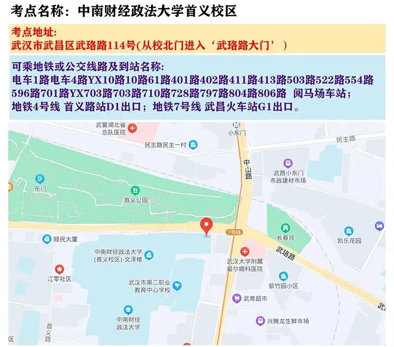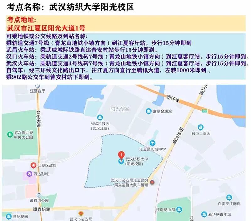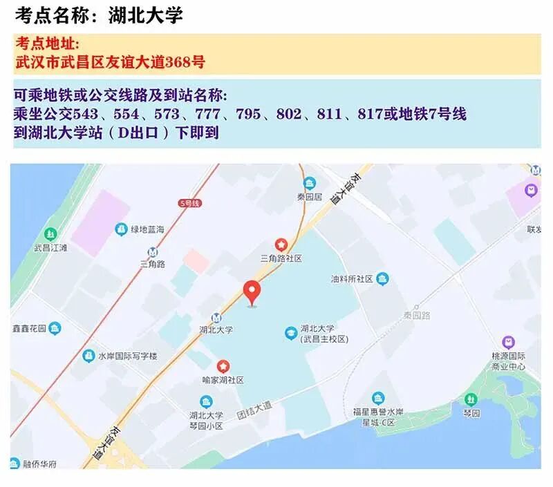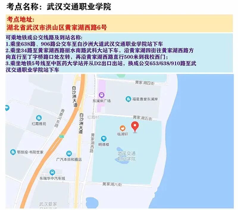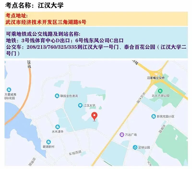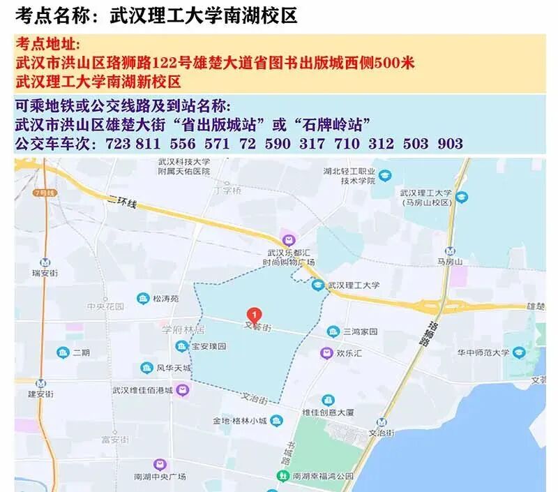 武汉考区考点地图