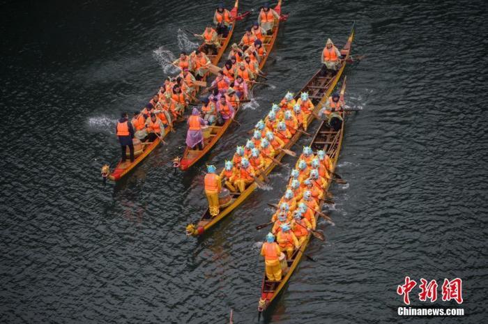 资料图:正值农历二月初二,湖南长沙石燕湖举行“龙抬头”龙舟赛。杨华峰 摄