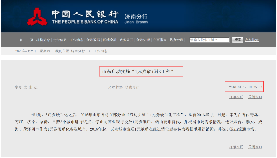 最早是在2016年1月份,中国人民银行济南分行发布通知:继1角、5角券硬币化之后,1月1日起,山东省在青岛、枣庄、济宁、临沂、日照5个城市进行“1元券硬币化工程”试点,停止向商业银行投放1元券纸币,转由硬币替代。目前该项工作在上述试点城市已经相继启动。1元纸币也会逐步退出流通市场。