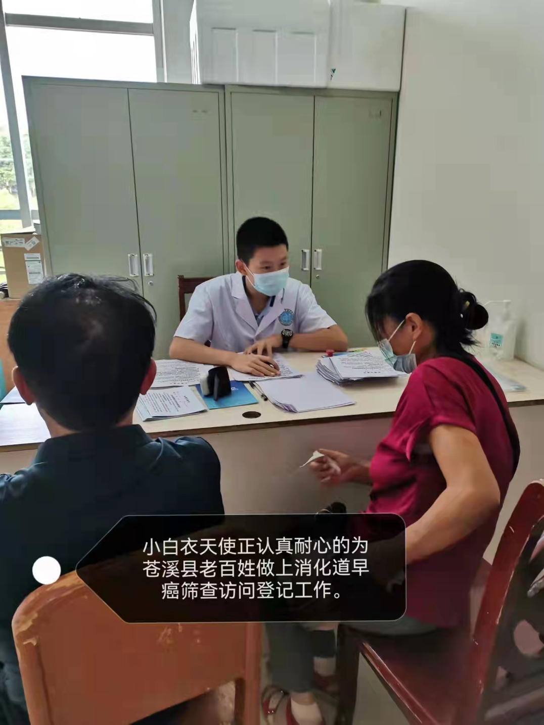 王俊博同学为居民做登记工作