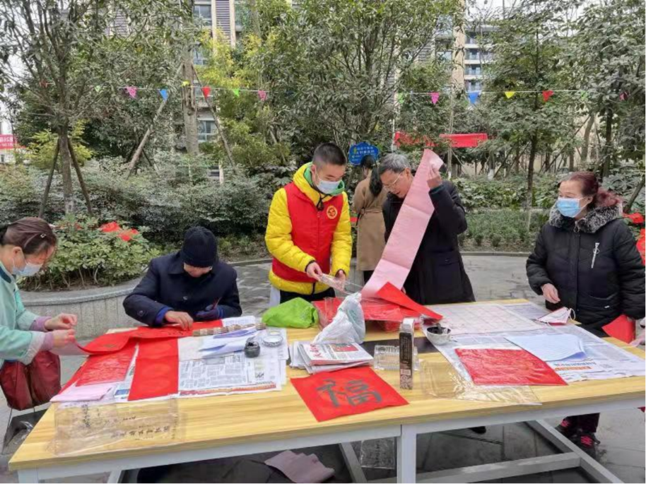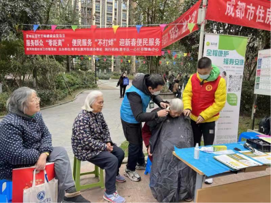 赵颢景同学参加新春便民服务活动,为老人义务理发、制作春联等