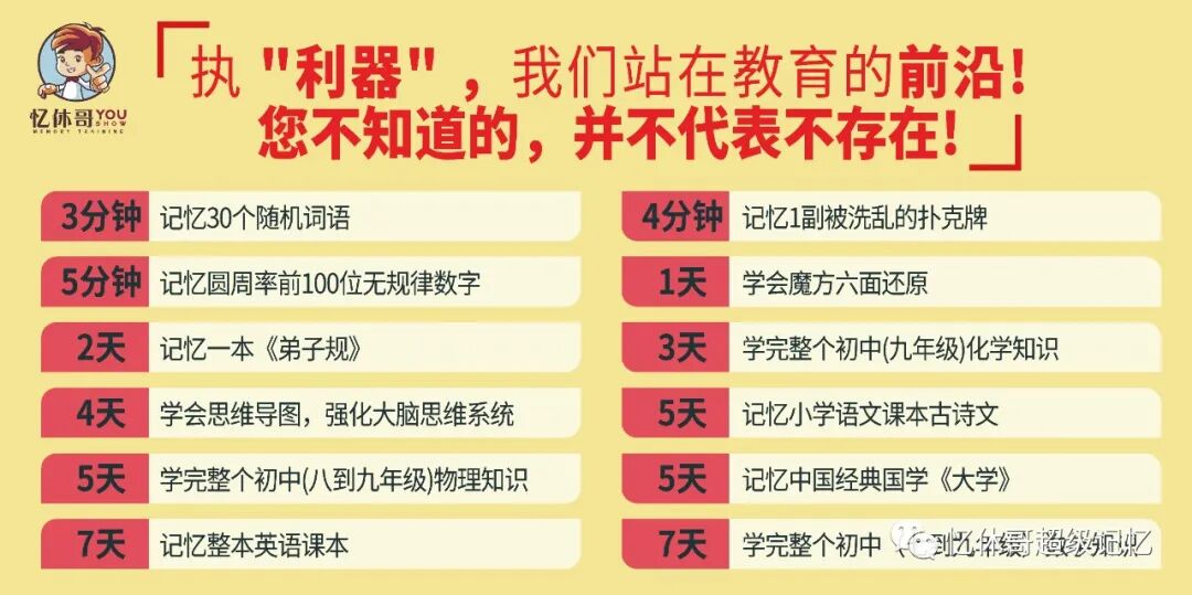 忆休哥记忆创始人、世界记忆大师李文明老师将在通山授课,教授科学的学习方法,教授如何科学使用大脑,每天轻松记忆单词,提升记忆力3至10倍。