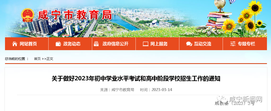 根据《市教育局关于印发〈咸宁市深化高中阶段学校考试招生制度改革实施方案〉的通知》(咸市教基〔2021〕4号)精神,为稳妥推进考试招生制度改革,统筹做好2023年初中学业水平考试工作,现将有关事项通知如下: