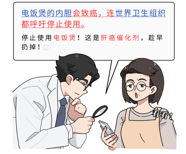 网上那些说世界卫生组织呼吁停止使用电饭煲的文章,主要指的是电饭煲内胆材质——特氟龙受到高温会分解成有害物质诱发肝癌,所以不建议使用。