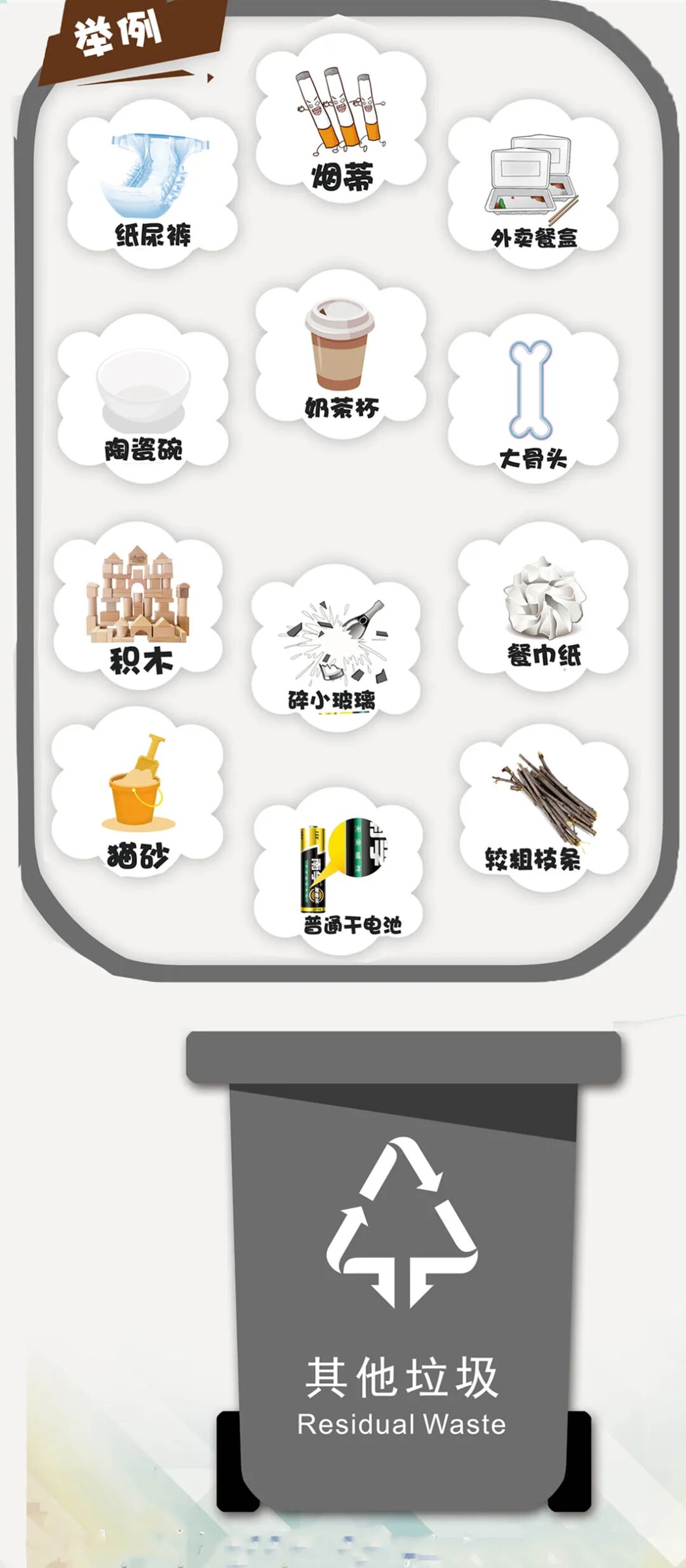 可能大家都知道垃圾分为厨余垃圾、可回收垃圾、有害垃圾和其它垃圾四类。生活中究竟怎么分呢?一起来看一看~