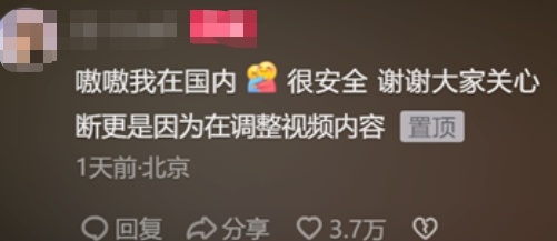 3月23日,记者又查看上述网红的社交账号,发现这些“被失联”的网红博主们的IP大多都已显示在国内,部分博主还更新了“报平安”的视频。
