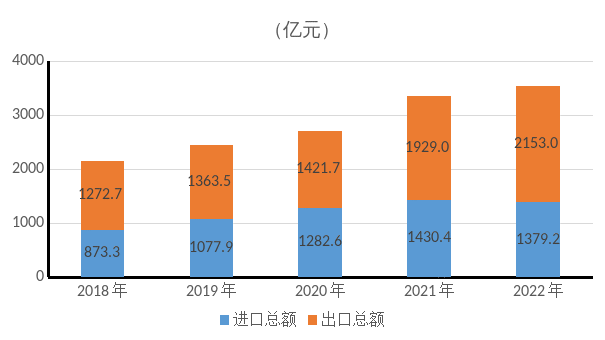 图4 2018-2022年货物进出口总额