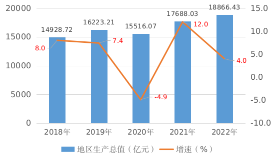 图1 2018-2022年武汉市地区生产总值及其增长速度