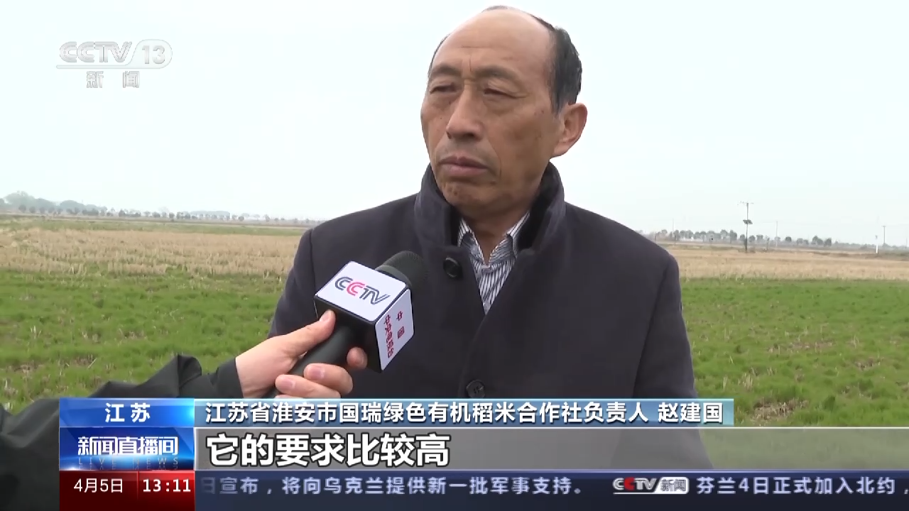 江苏省淮安市国瑞绿色有机稻米合作社负责人 赵建国:种这个有机水稻,它的要求比较高,最关键的改良土壤有机含量。通过我们这个紫云英绿肥的种植,提高了这个土质的营养值以后,现在有机质含量达到6.5%以上。