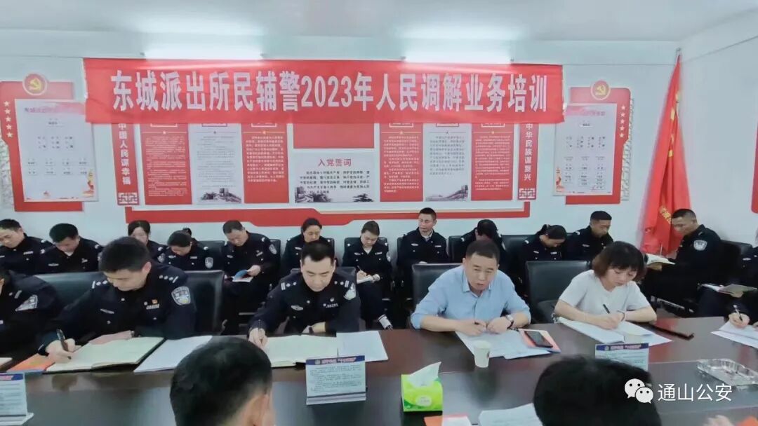 云上通山报道:为进一步推进“派出所主防”工作,提升人民调解工作的规范化水平,切实增强全所民辅警人民调解业务能力,4月3日晚,通山公安东城派出所召开2023年度人民调解业务培训会。培训会特邀了通羊镇司法所郭梦星、通羊镇政法办徐玉立参会,派出所全体民辅警共60余人参加此次培训。
