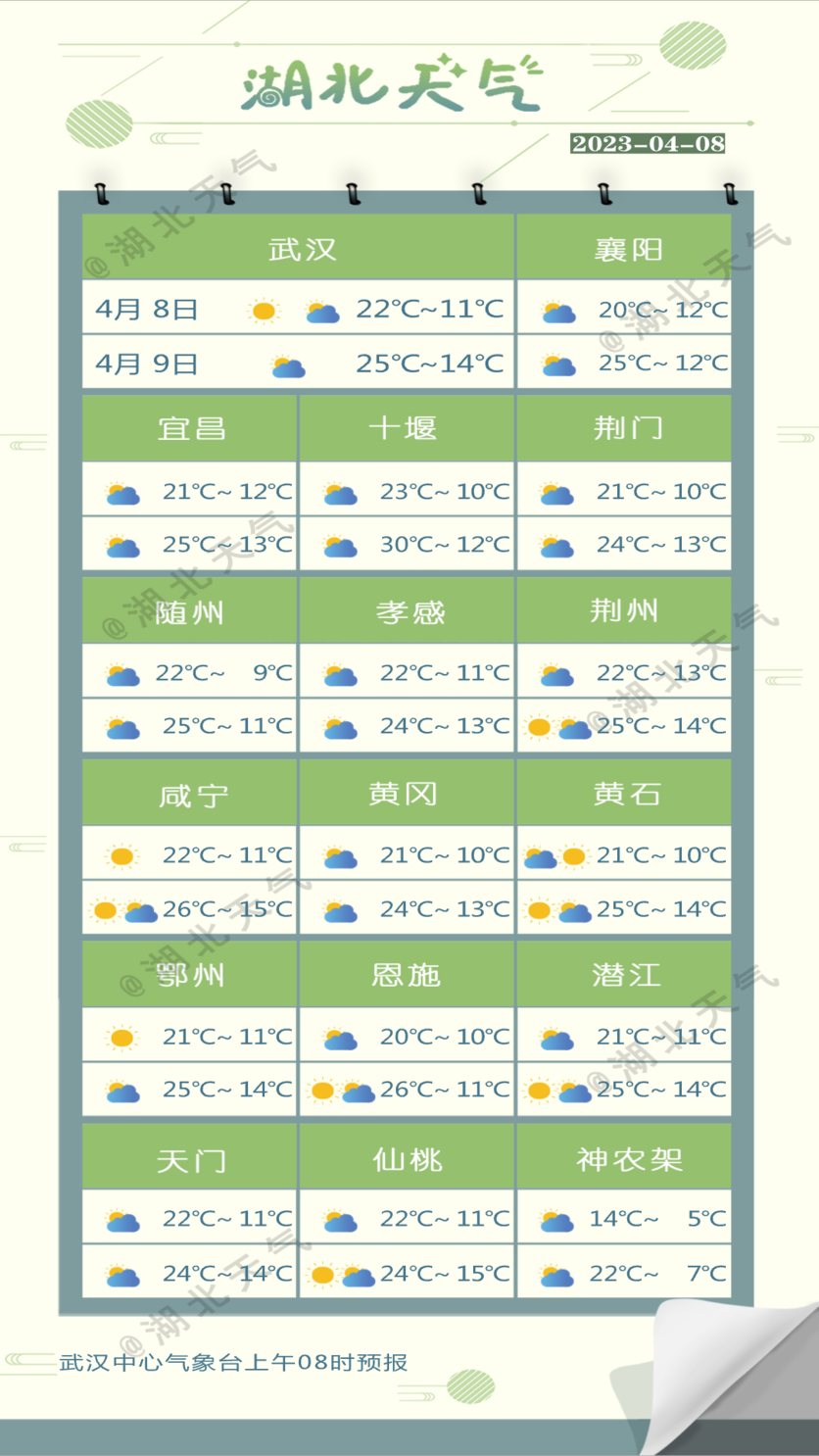今天周六,湖北晴暖继续