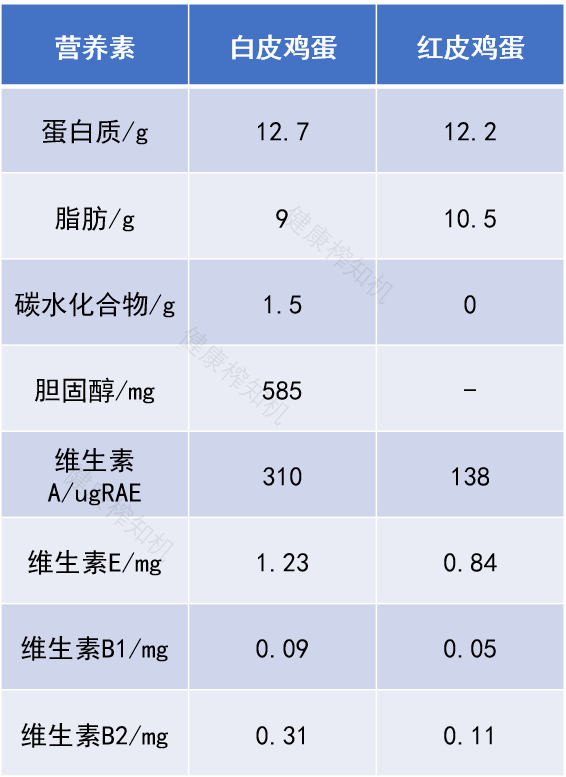但同为鸡蛋,核心营养成分无差异。以下数据出自《中国食物成分表标准版(第6版第二册)》,含量均为每100g可食部。