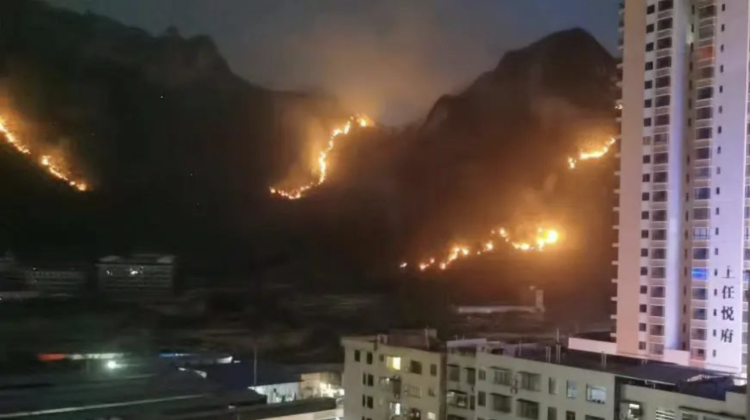 据悉,老虎山是金城江城区主要的山脉之一,占地面积较大。当天15时许,老虎山靠近城东片区的山头开始起火,由于风力较大,天气干燥,火势蔓延较快,起火点呈多点分布。