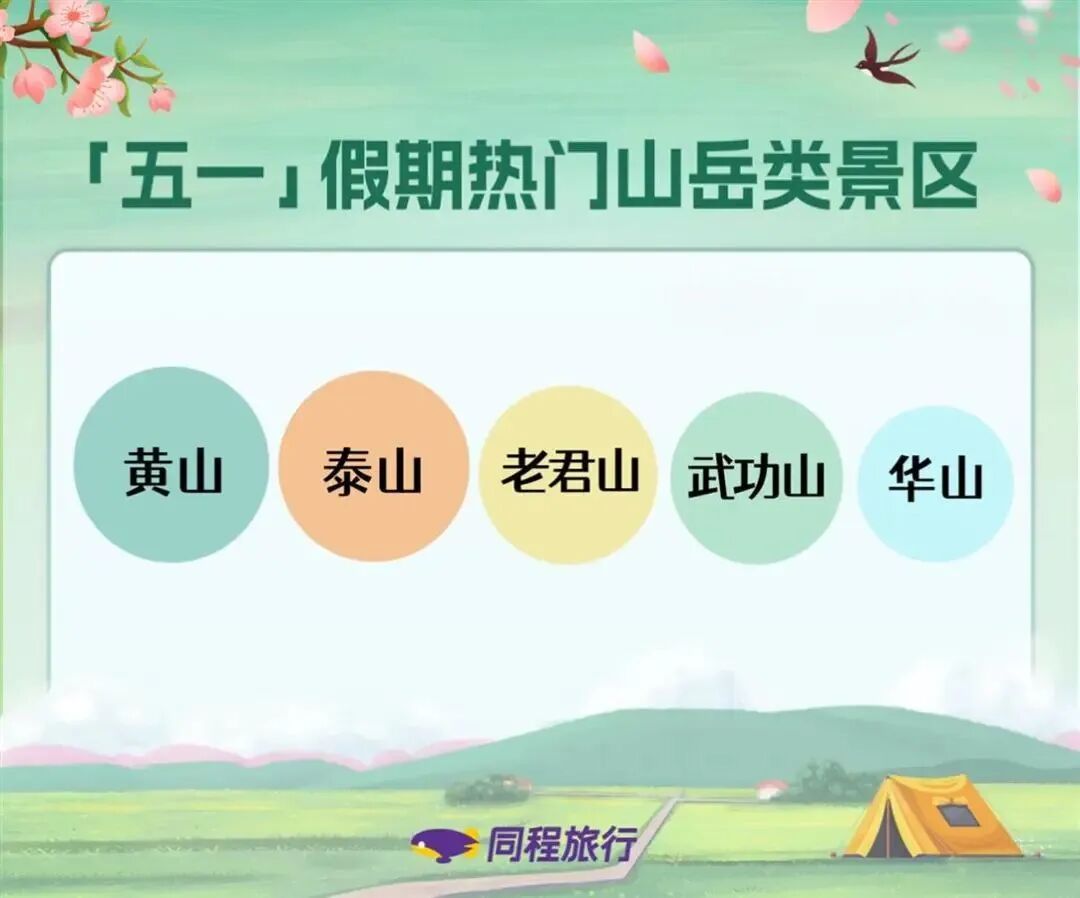 春季气温适宜,户外登山也成为游客出行的热门选择,国内热门的山岳类景区在4月的每个周末都出现客流量高峰。近一周,平台上山岳类景区搜索热度整体上涨,涨幅高达193%。最受关注的山岳类景区主要有黄山、泰山、老君山、武功山和华山。
