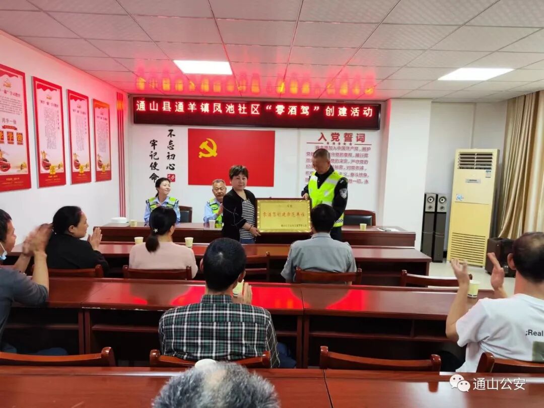 宣讲结束后,交警大队民警为通羊镇凤池社区授牌,社区工作人员带头签订了“零酒驾”承诺书,在社区内广泛开展宣传,让社区居民树牢“开车不喝酒、喝酒不开车”的安全意识。