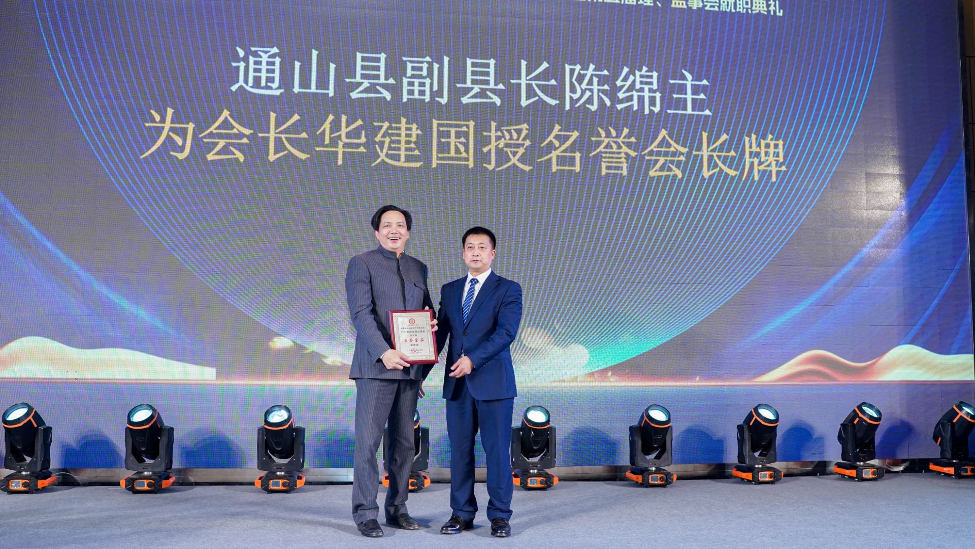在深圳,刘子恒一行出席了广东省湖北通山商会第四届第四次会员大会、第五届理(监)事会就职典礼。刘子恒为第五届当选会长程用洲授会长牌;方家忠为第五届当选监事长阮绪强授监事长牌;杜兵为于波授终身荣誉会长牌;陈绵主为华建国授名誉会长牌,并共同见证四届和五届商会会旗交接仪式。