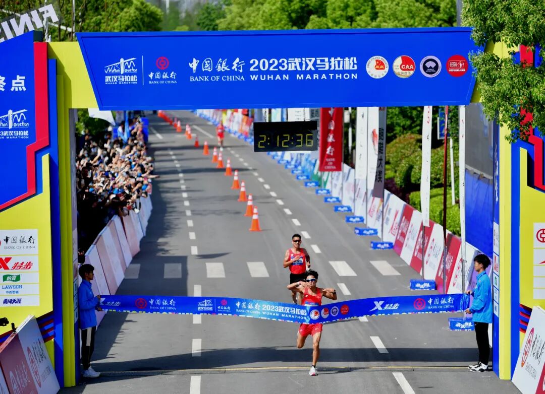 中国选手何杰夺得2023年武汉马拉松全程项目的冠军成绩约为2小时12分35秒亚军是杨绍辉,第三名是董国建中国选手包揽前三名
