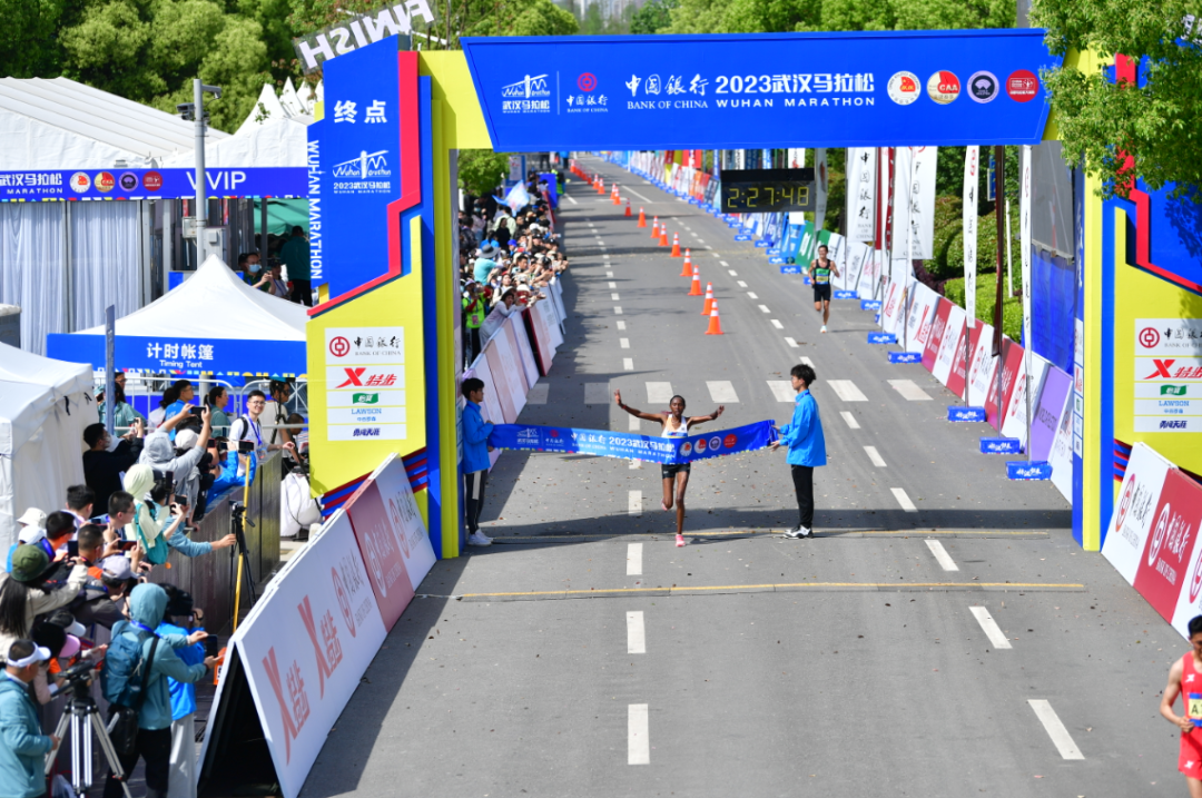肯尼亚选手卡拉米(LUCY KARIMI TIGIST) 夺得2023年武汉马拉松全程项目的女子组冠军