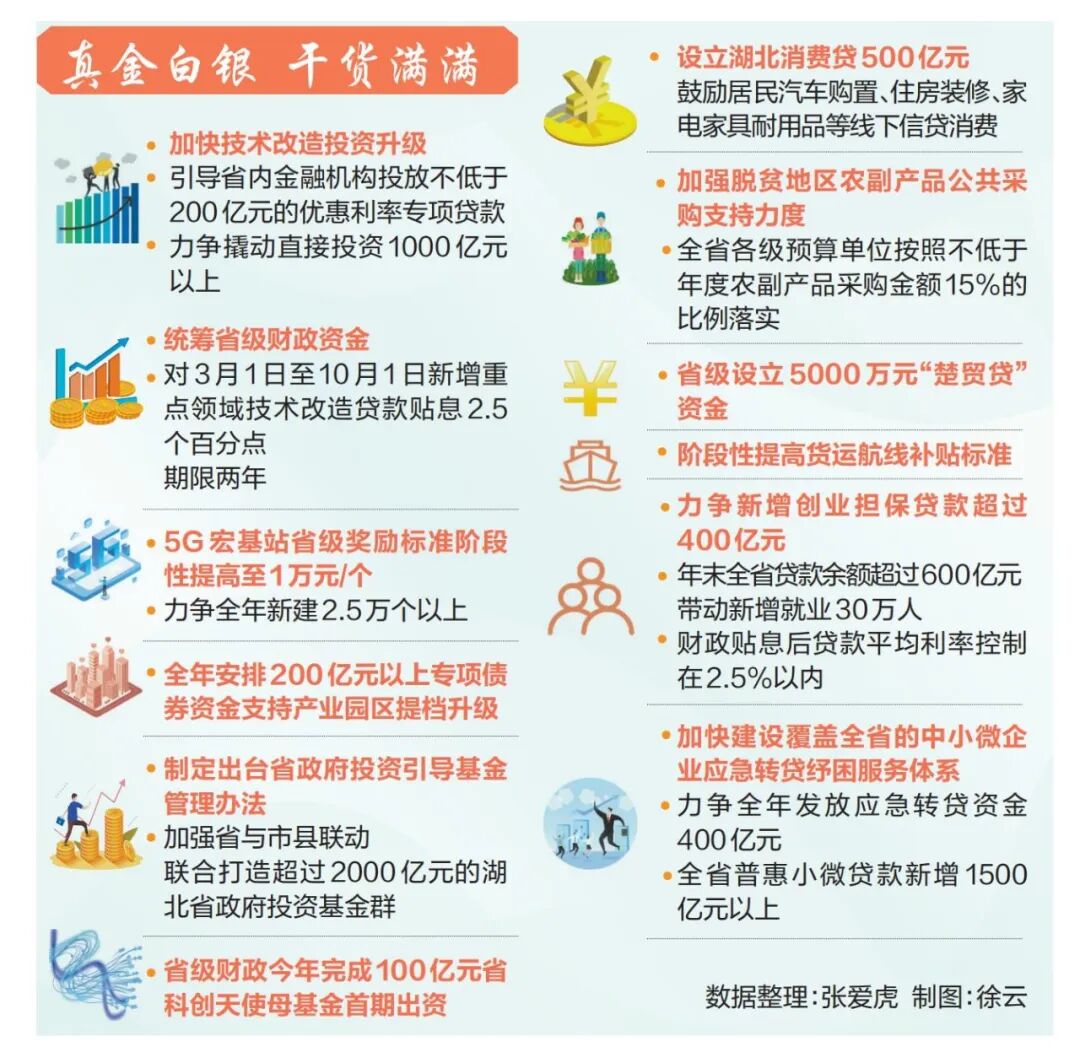 政策工具更新,加大引导撬动。加大财政贴息支持力度,在金融机构自主决策、风险可控的基础上,今年鼓励发放技改专项贷200亿元、湖北消费贷300亿元,创业担保贷、政采贷、应急周转贷等现有政策也将发力,预计相关贴息贷款政策性工具将直接引导撬动信贷资金超1300亿元。