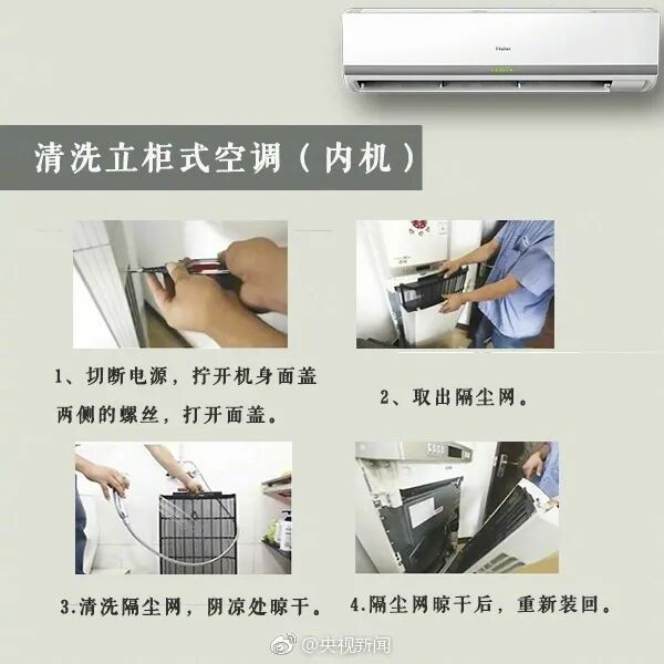专家提示,家用空调每年夏天使用之前一定要进行清洗,特别是内部构件的清洁,最好交给专业人士完成。而中央空调则需定期进行检测,使用专业消毒剂,杀灭空调内滋生的病菌和螨虫。